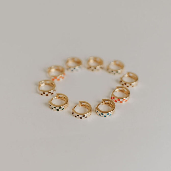 The Black & White Checkered Hoops are made of high quality gold fill and are hypoallergenic and good for sensitive ears. They have a huggie closure style and are the cutest new jewelry trend! Outer diameter is 10mm. Now available in sterling silver as well!